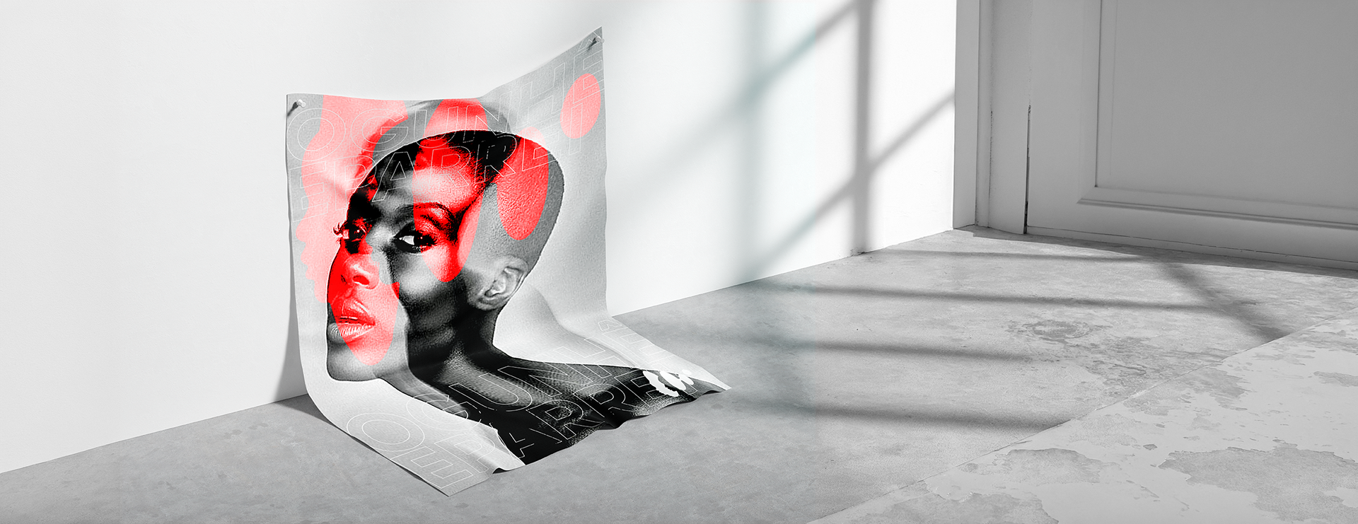 The visual identity was built around the concept of mediation between worlds. The central symbol represents two profiles facing each other, evoking dialogue, listening, and the presence of spiritual guides. The organic shapes create a sense of flow and vibration, referencing voice, energy, and the transmission of ancestral knowledge. The red color symbolizes strength, vitality, and axé, essential elements within Afro-Brazilian spiritual traditions.